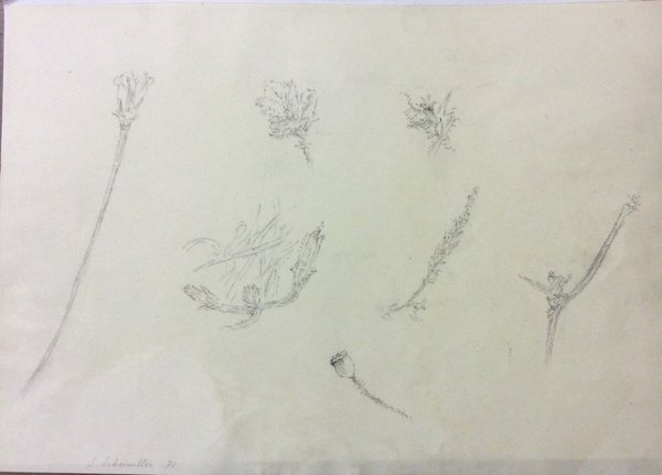 7 disegni originali di Silvano Scheiwiller eseguiti su un foglio in A4, firmati dall'Artista S. Scheiwiller 71. Sul retro, una dedica autografa: A Odetta Bertelli / con gli Auguri più affettuosi / Silvano / 7 maggio 1977. Ben conservato. Silvano Scheiwiller (1937 1985), fratello di Vanni Scheiwiller e figlio di Giovanni, oltre che nipote di Adolfo Wildt. Diplomatosi a Brera nel 1960, dopo un breve periodo a Firenze, ha vissuto a Roma e Parigi. Figura schiva e riservata, anche rispetto alle edizioni All'insegna del pesce d'oro e alle stesse edizioni Scheiwiller, ha collaborato in qualche occasione alla fucina familiare con immagini destinate sia a libri ad alta tiratura (mille copie), che a edizioni di pregio. Tra le collaborazioni con i poeti, in particolare, oltre all'incontro con Vittorio Sereni in La piega giusta (Scheiwiller 1976), si ricordano almeno, in ordine di tempo: Mary De Rachewiltz S. Scheiwiller, Dodici poesie dodici incisioni, Milano, Ugo Allegretti di Campi, 1966; Albino Pierro Silvano Scheiwiller, Quattordici poesie e nove disegni, Milano, Edizioni 32, 1977; Bartolo Cattafi, Oltre l'Omega, All'insegna del pesce d'oro, Milano 1980. Tra le mostre monografiche dell'artista si ricordano, tra le prime, quella tenuta alla Galleria La Chiocciola di Padova nel 1966 e, negli ultimi anni, quella allestita presso la Galleria Spriano di Omegna (VB). (Marco Corsi. Cfr. progetto Verba Picta dell'Università degli Studi di Firenze.
