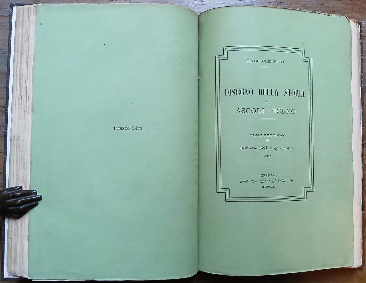(Storia locale - Marche - Città di Ascoli Piceno) Due volumi riuniti in un tomo in 4° piccolo (cm 28,5 x 19,5), legatura in mezza pelle con titoli ed impressioni in oro al dorso, conservate le copertine delle brossure editoriali, pp. complessive 323,(1). Piccola menda marginale che interessa la prima di copertina, il foglio di guardia anteriore ed il frontespizio del primo volume , lievi e circoscritte tracce di ossidazione ad alcune pagine, peraltro esemplare solido e ben conservato. Edizione originale.