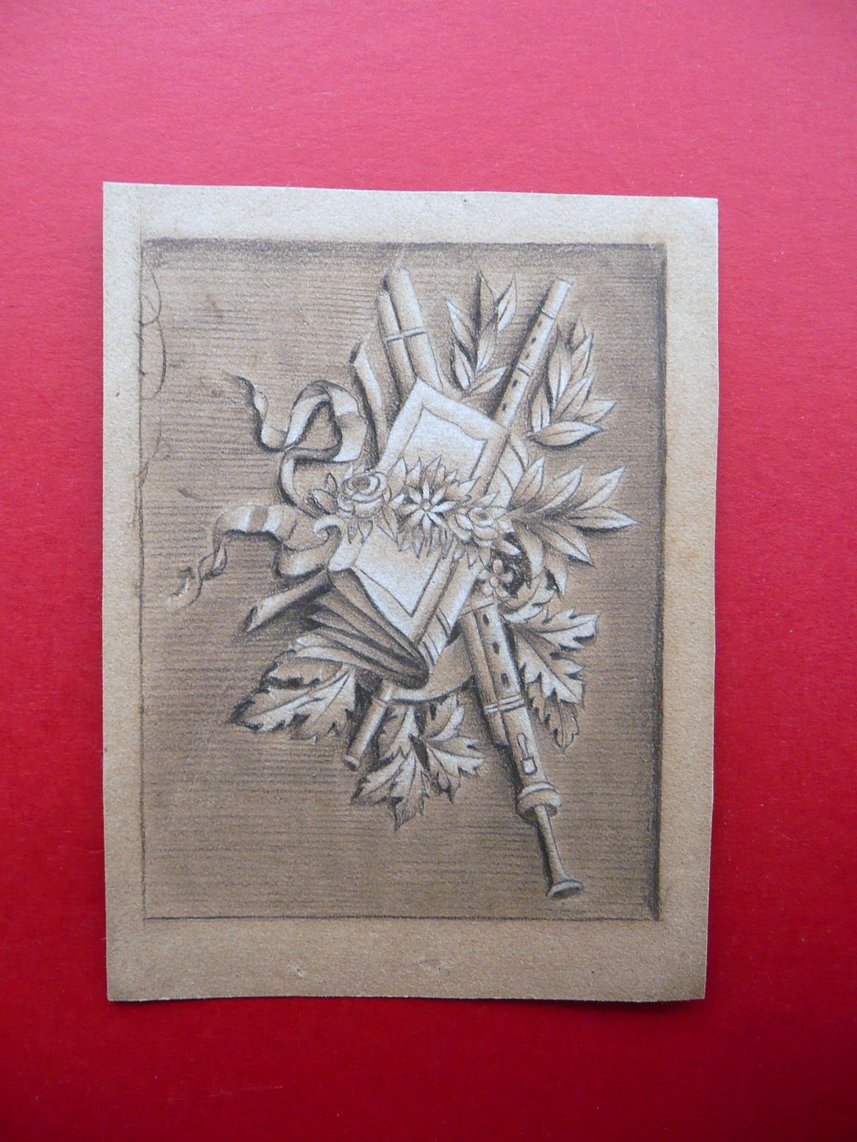 Disegno Originale Carboncino Matita Arti Musica Flauto Met‡ '800