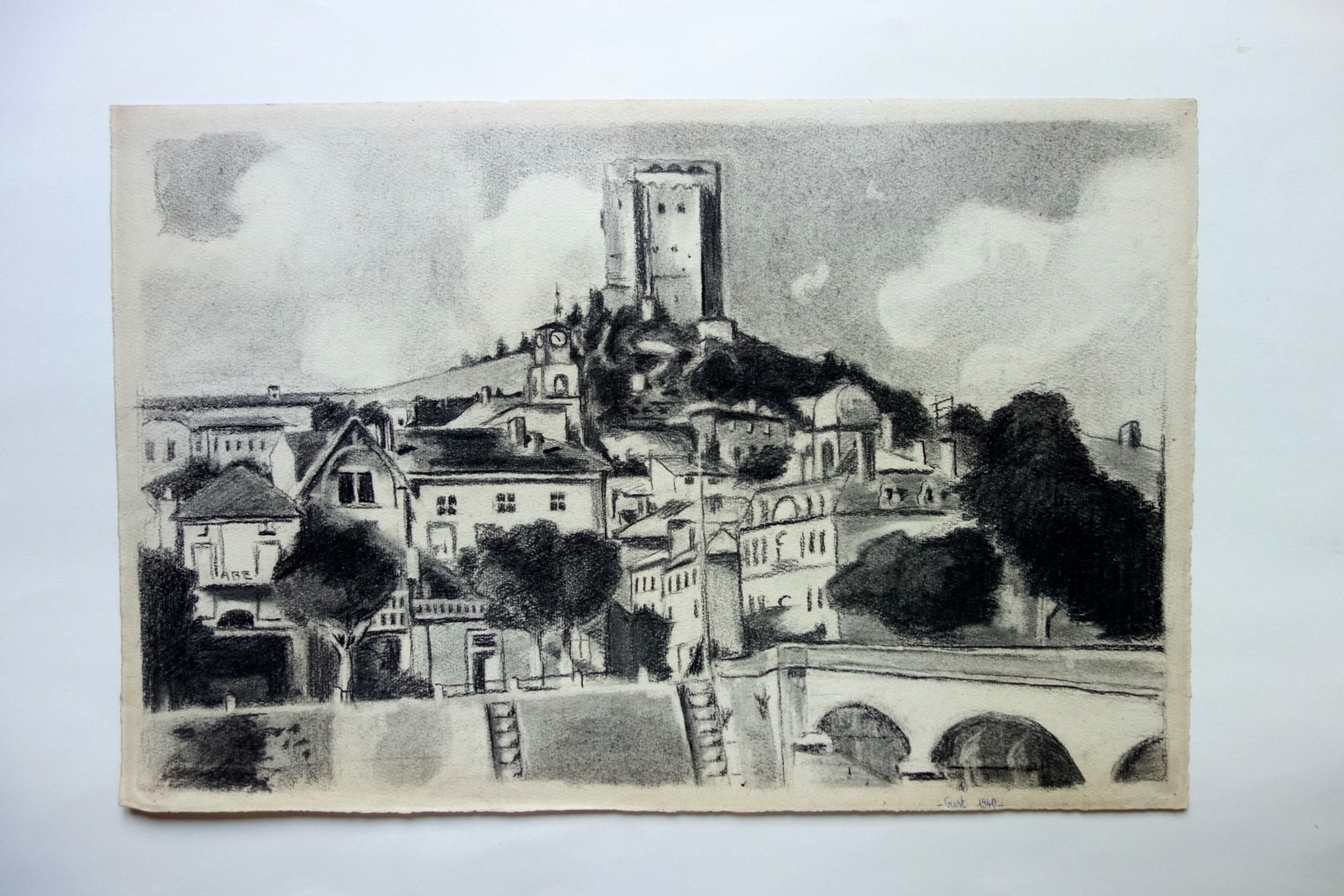 Disegno originale, Grest" (veduta cittadina) disegno originale a carboncino non firmato 1940 1940; disegno originale realizzato su carta, tecnica carboncino; retro bianco. Cm 31,5x48,5. Condizioni di conservazione Molto ben conservato con minimi segni del tempo. Per maggiori dettagli vedi foto. EXTRA.0512 N "
