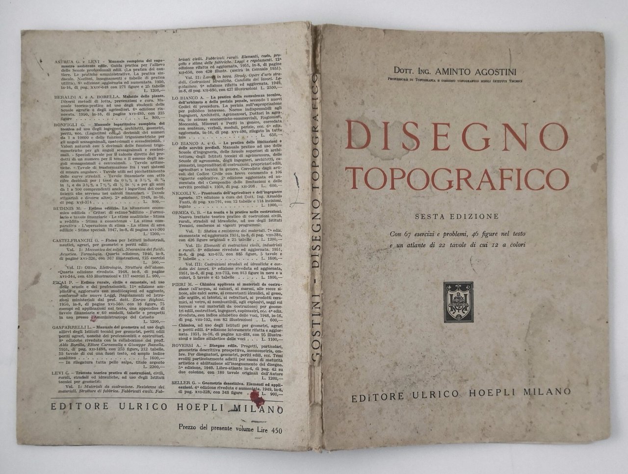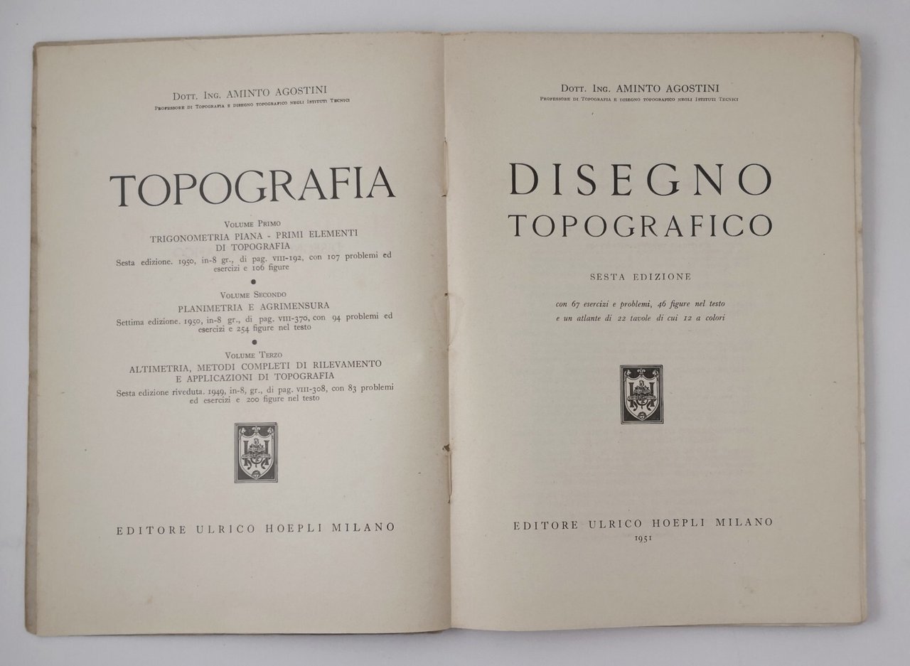 DISEGNO TOPOGRAFICO di Aminto Agostini 1951 Ulrico Hoepli manuale