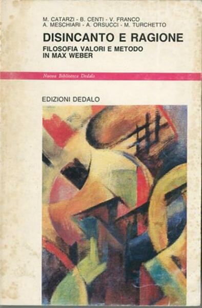 276 p. ; 21 x 14 cm. Nuova biblioteca Dedalo. Nuovi saggi, 70. Attraverso l'indagine, avviata da punti di vista e prospettive differenti, sulle radici del pensiero weberiano, se ne coglie la genesi sotto vari aspetti (storico, filosofico, economico, sociologico). In questo modo Weber viene collocato nel suo tempo, e alla luce di questa prospettiva storica emergono intrecci e collegamenti finora scarsamente rilevati. I saggi si saldano l'uno all'altro fino a dare un'immagine organica, e insieme problematica e stimolante del pensatore tedesco, che tocca i fondamentali "snodi" teorici con cui Weber si confronta e a cui dà le sue originali soluzioni: dalla crisi dell'economia classica all'elaborazione delle categorie che definiscono le scienze sociali dal rapporto religione-economia, alla riflessione sulla particolarità dell'Occidente, sui valori, il disincanto e la ragione nel mondo moderno. Contiene saggi di M. Catarzi, B. Centi, V. Franco, A. Meschiari, A. Orsucci e M. Turchetto. Brossura editoriale, coperta illustrata a colori in cartoncino flessibile plastificato lucido. Alcuni segni del tempo alla coperta e al dorso, per il resto libro integro. Codice libreria 7803.