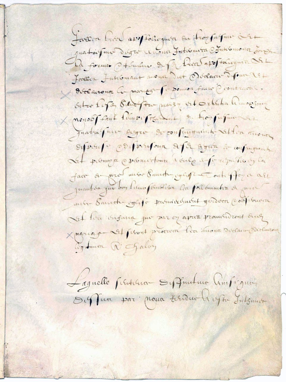 Dispensa matrimoniale Arnolfini Ortensia - Manzi Silvestro. Manoscritto pergamenaceo in francese. Lione, 1588