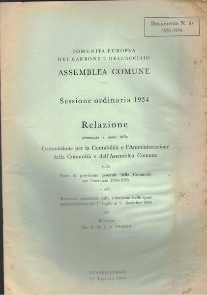 Dispniamo di 5 documenti dell'assemblea comune sessione ordinaria dal n° 10 al n° 14 del 1954.