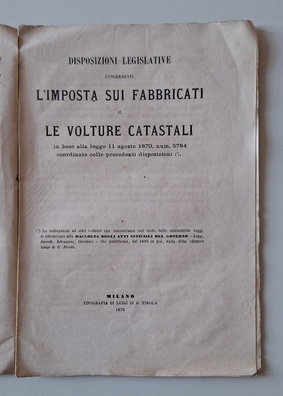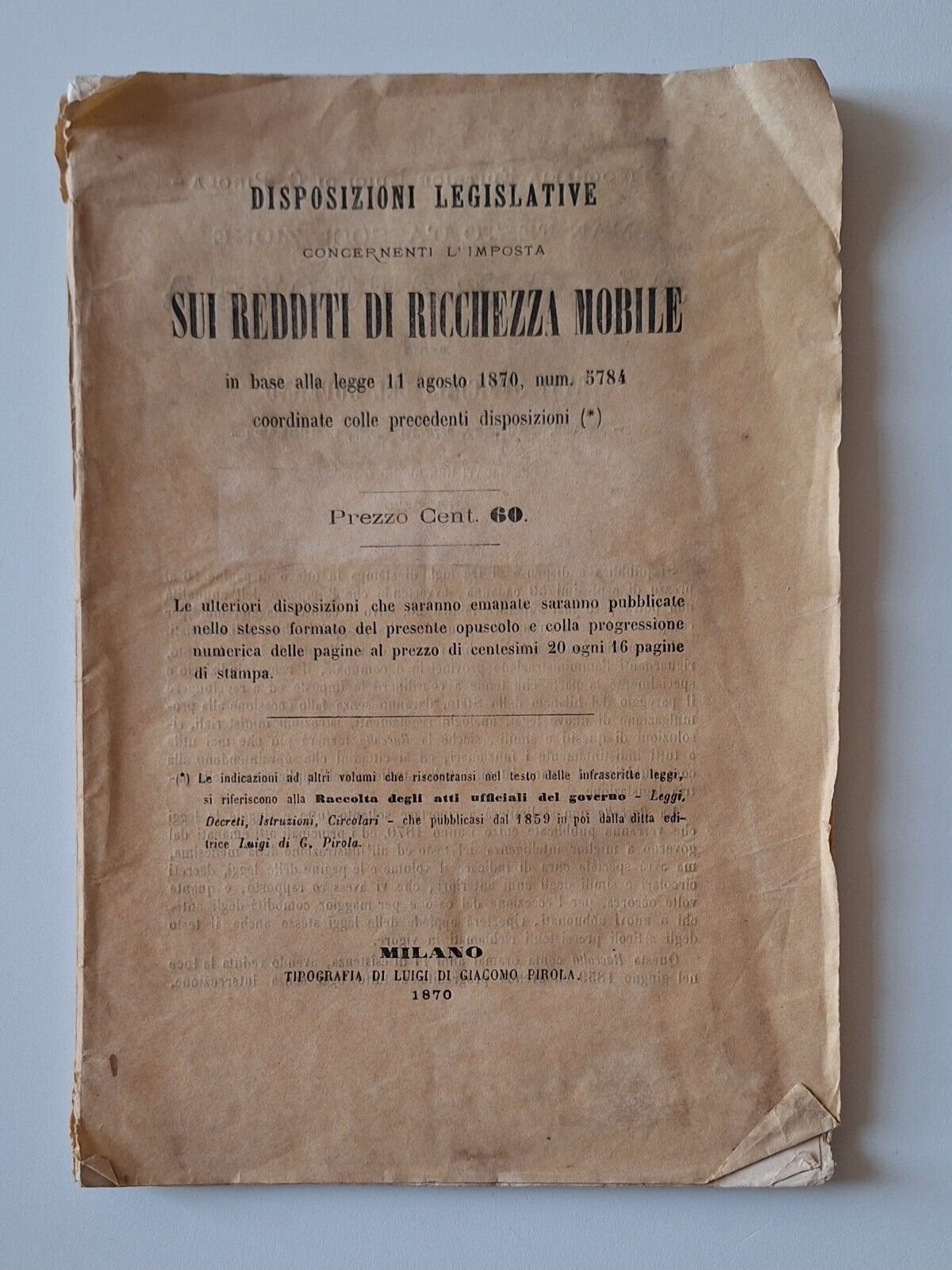 DISPOSIZIONI LEGISLATIVE.. L'IMPOSTA SUI REDDITI DI RICCHEZZA MOBILE PIROLA 1870In 8°, legatura editoriale cartacea.Lievissimi segni alla copertina.