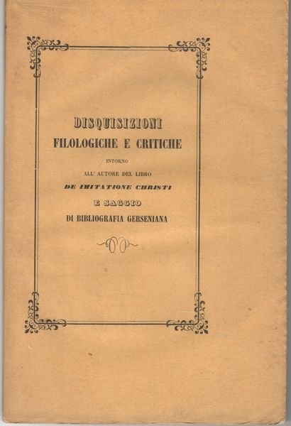 Disquisizioni filologiche e critiche intorno all'autore del libro De imitatione Christi e saggio di bibliografia gerseniana