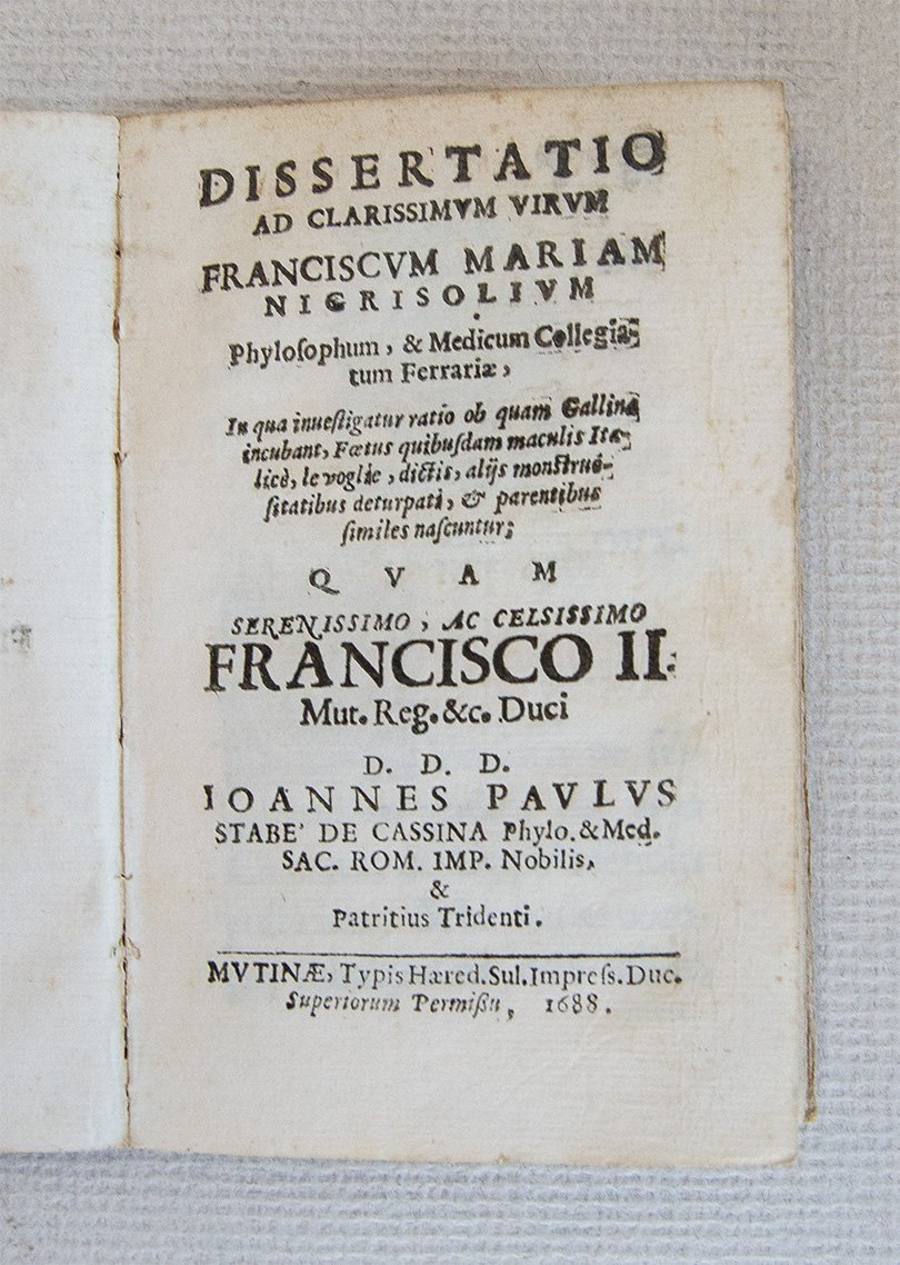 Dissertatio ad Clarissimum Virum Franciscum Mariam Nigrisolium Phylosophum & Medicum Collegiatum Ferrariae....
