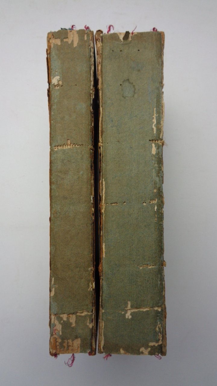 . dans laquelle l'encyclique Vix pervenit de Benoît XIV, sur la matière de l'usure, est clairement exposé et victorieusement défendue. Due volumi (21 cm) di XII-464 e (8-)XII-768-(12) pagine. Cinquième édition augmentée. Bref de sa Sainteté Léon XII (di 8 pp.) in testa al secondo volume. Fioriture soprattutto alle prime e ultime pagine. Un timbro alla pagine di titolo. Legatura coeva in tutta pelle con inquadratura in oro e a secco; MANCANO TOTALMENTE I DORSI. Tagli dorati. Edizione più rara delle precedenti.