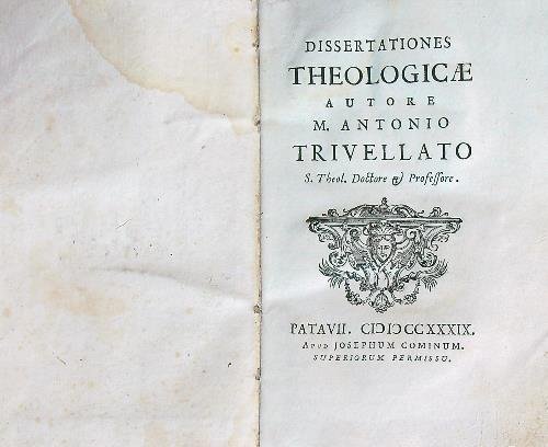 Dissertationes Theologicae. Autore M. Antonio Trivellato