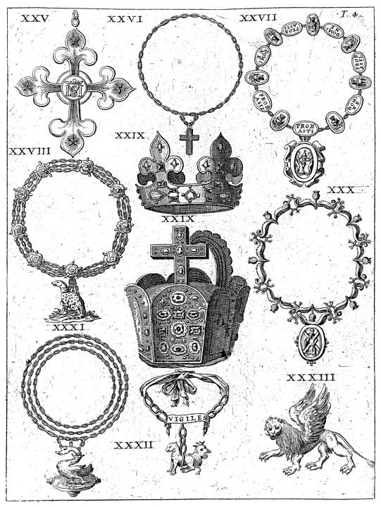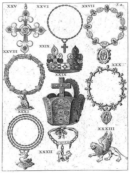 In-8 gr. (mm. 272 x 190), cartonato rustico coevo, titolo manoscritto al dorso, pp. XXIV,480, bella vignetta al frontesp. e un ritratto di Vincenzo Gaifani (nobile bresciano cui è dedicata l'opera), incisi in rame da Domenico Cagnoni. Il volume, ornato da una testata alle armi e da una grande e bella iniziale figurata a vignetta, è illustrato da 12 tavole fuori testo incise in rame che raffigurano: "armi, collane degli Ordini e delle religioni militari che sono in esse scolpite", ritratto di Costantino, una piccola figura in bronzo e il Gran Maestro dell'Ordine di Costantino nei suoi abiti da cerimonia.Cfr. Spreti,3649 - Choix de Olschki,I,762 che cita solo 3 tavole fuori testo.L'A., al secolo Blaise Vauzelle (1651-1729), teologo carmelitano, autore di scritti teologici contro Giansenio e i giansenisti, di "Philosphicae disputationes" contro Descartes e Gassendi, ha lasciato anche opere di mistica, di cronologia e di metodologia critica. Cosi' Diz. Treccani,VIII, p. 567. Piccole macchiette su due carte, altrimenti fresco esemplare con barbe, ben conservato.