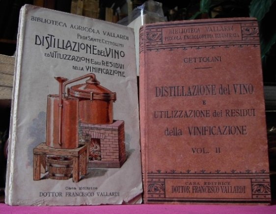 Due volumi in 8, il primo in brossura editoriale, titolo al piatto ed al dorso, occhiello, frontespizio, indice, appendice, 329 pp. con numerose tabelle e figure nt., e una tavola ripiegata ft., le condizioni sono belle, la legatura allentata. Il secondo tomo presentato con legatura editoriale in tela impressa, titolo al piatto ed al dorso, sguardie, occhiello, frontespizio, XV, 419 pp, bianca finale, perfetto. Uno dei manuali pi completi ed efficaci sulla distillazione del vino e sull'utilizzazione dei residui della vinificazione. Pur con due legature diverse, entrambe editoriali, opera completa di non facile reperimento.