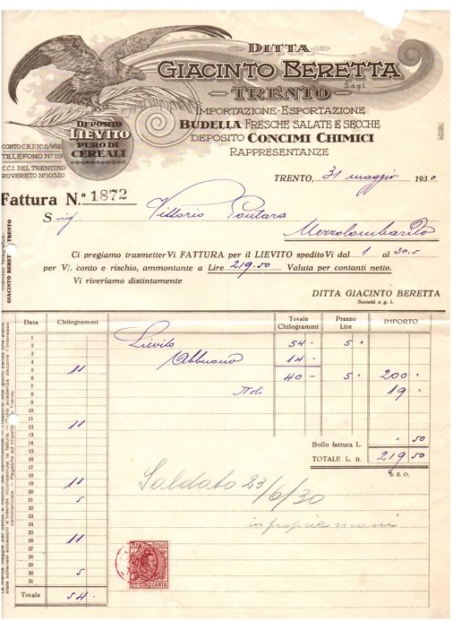- [Lievito - Cereali - Concimi Chimici - Budella - Trento].