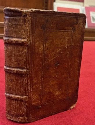 16mo (cm. 13,6), 1 c.nn. (frontespizio entro graziosa cornice tipografica), 200 cc., 4 cc.nn. Legatura seicentesca in piena pelle con nervi al ds. (lievi aloni e piccole mancanze agli angoli e alle cuffie). Cornici concentriche con fleurons angolari ai piatti. Antico ex libris manoscritto sulla carta di guardia libera anteriore. Minimi aloni marginali ed uno strappetto senza perdita su una carta finale dell’Indice, peraltro esemplare in ottimo stato di conservazione. Rara edizione non censita da ICCU nelle biblioteche italiane. Non in Adams.