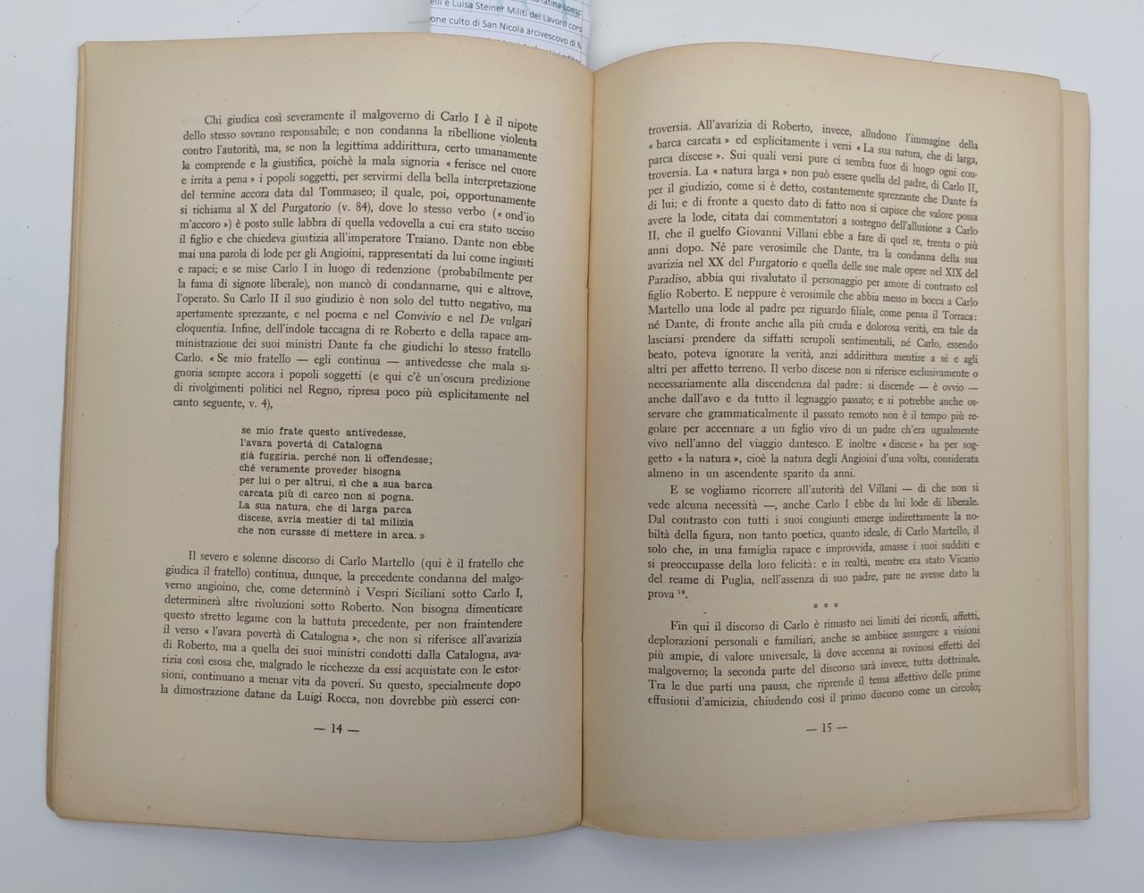 Divina Commedia AndrÈ Pezard Il canto VIII del Paradiso Cappelli 1953