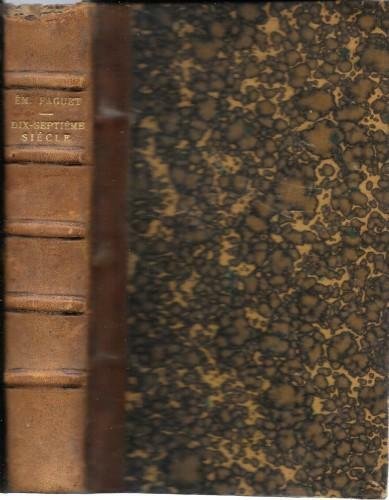 in 16°, pp. 539, leg. coeva m/pelle chiara, ds. a 5 nervi con tit. in oro, piatti e sguardie marmor. Descartes, Malebranche, Corneille, Pascal, La Rochefoucauld, La Fontaine, Molière, Racine, Boileau, Madame de Sévigné, Bossuet, Fénelon, La Bruyère, Saint-Simon. Manca la cuffia sup. 500/37