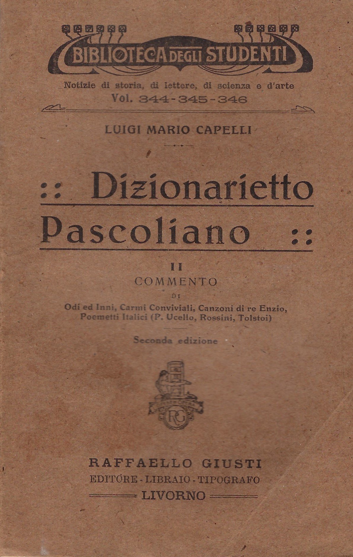 Dizionarietto Pascoliano. II commento di Odi ed Inni, Carmi Conviaviali, Canzoni di re Enzio, Poemetti Italici (P.Ucello, Rossini, Tolstoi). Seconda edizione.