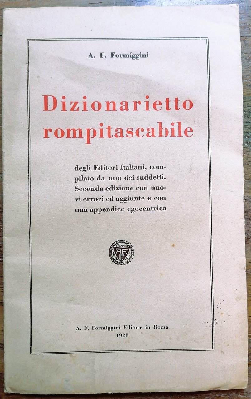 Dizionarietto rompitascabile degli Editori italiani, compilato da uno dei suddetti. Seconda edizione con nuovi errori ed aggiunte e con una appendice egocentrica.