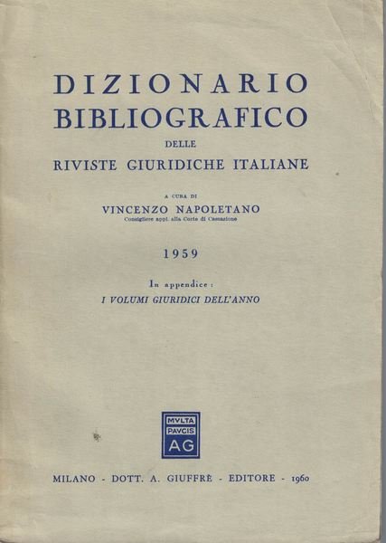 Dizionario bibliografico delle riviste giuridiche italiane. Con i sommari analitici 1959. In appendice i volumi giuridici dell'anno a cura di Vincenzo Napoletano.
