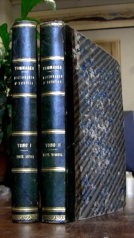 Due volumi in 8 grande legati in mezza pelle, titolo ai dorsi a riquadri, sguardie, occhielli, frontespizi, XIV, 511, 511 pp. Eccellente quanto importante ed interessante fatica del Tommaseo, qui nell'edizione superbamente ampliata e completata rispetto alla prima del 1840 in un solo volume e quindi in parte edizione originale. Qualche foglio brunito (massime i frontespizi, per il restante in pi che bello stato. Notevolmente poco comune.