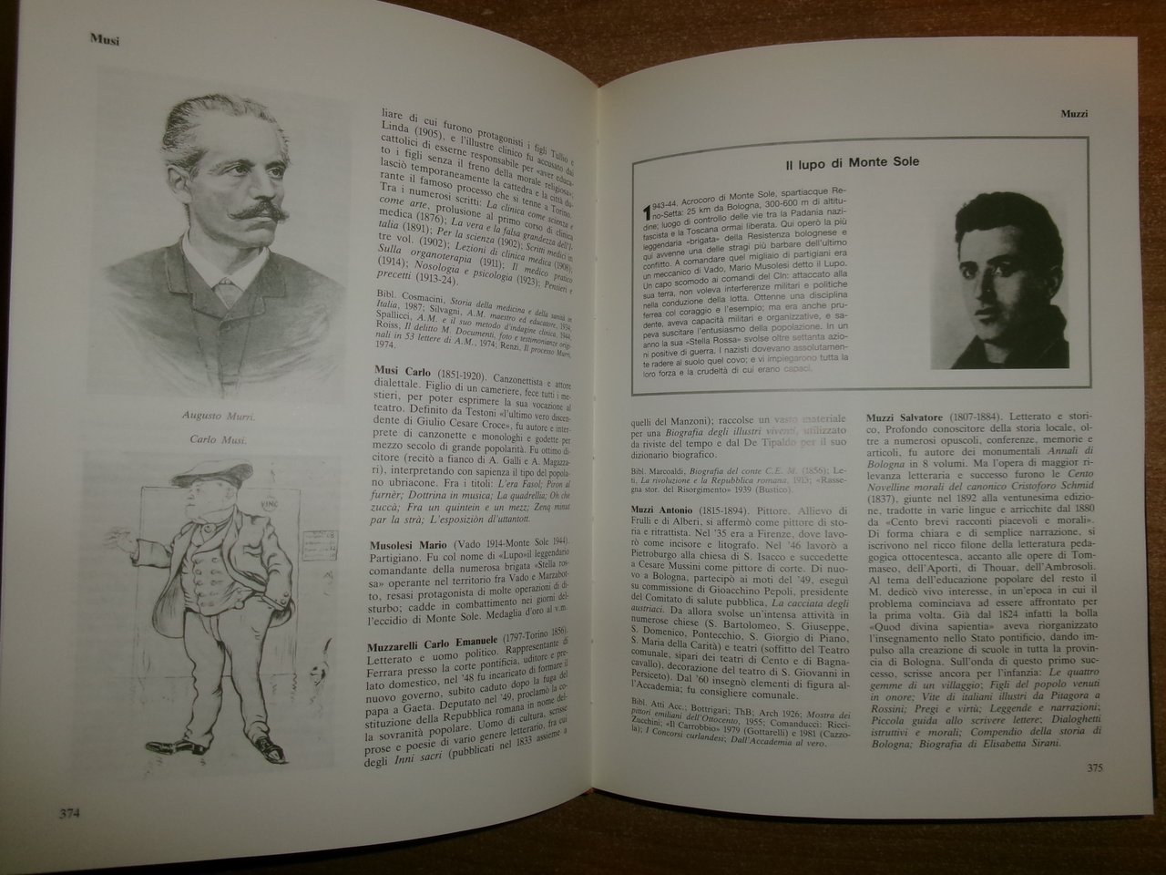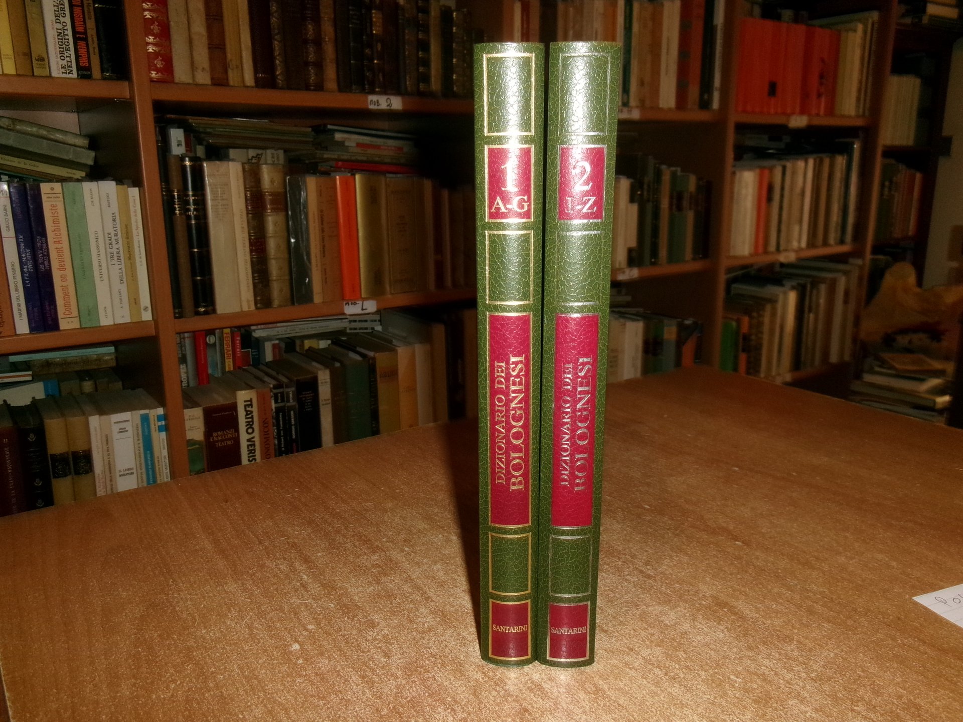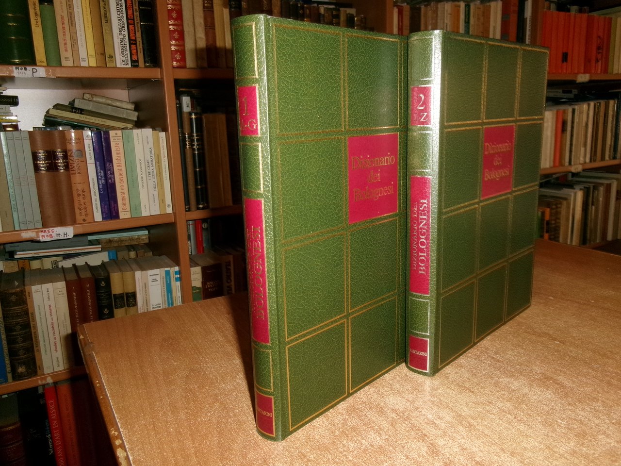 A cura di Giancarlo Bernabei. Bologna, Tip. Compositori, 1989 - 1990. Dizionario dei Bolognesi. 2 volumi in-4° piccolo, similpelle con fregi in oro, complessive 558 pp. con numerose illustrazioni e ritratti in bianco e nero. Ottimo esemplare. Uff. C - IV - 3 - 2