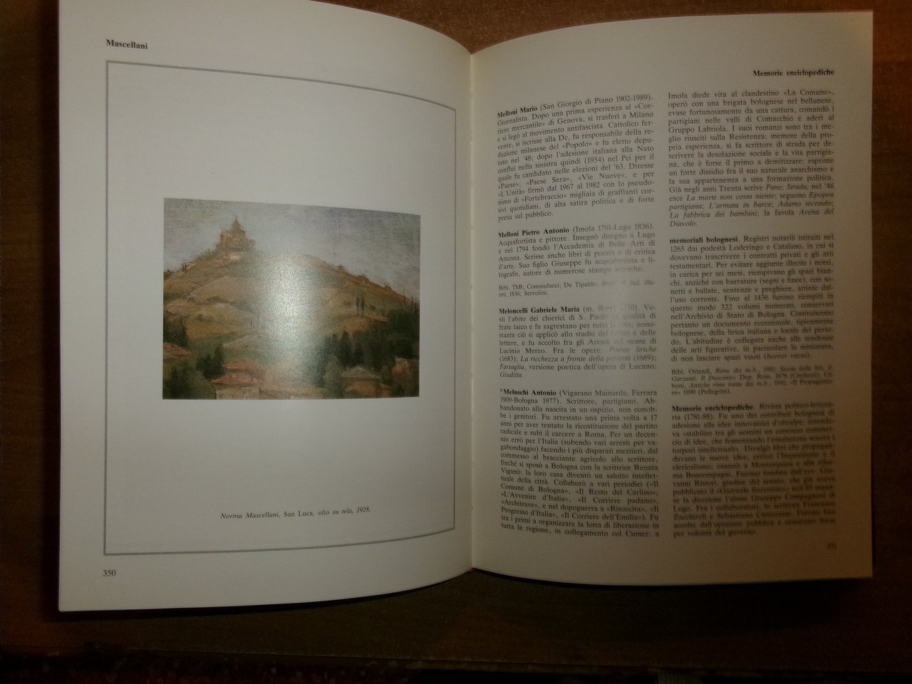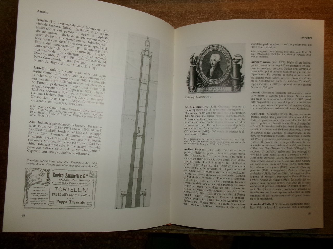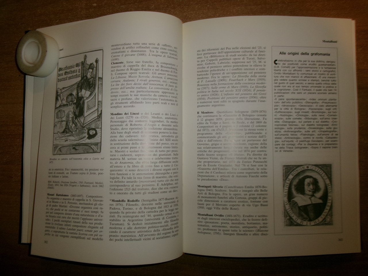 A cura di Giancarlo Bernabei. Bologna, Tip. Compositori, 1989 - 1990. Dizionario dei Bolognesi. 2 volumi in-4° piccolo, similpelle con fregi in oro, complessive 558 pp. con numerose illustrazioni e ritratti in bianco e nero. Ottimo esemplare. Uff. C - IV - 3 - 2