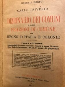 DIZIONARIO DEI COMUNI E DELLE FRAZIONI DI COMUJNE DEL REGNO D’ITALIA E COLONIE. TERZA EDIZIONE