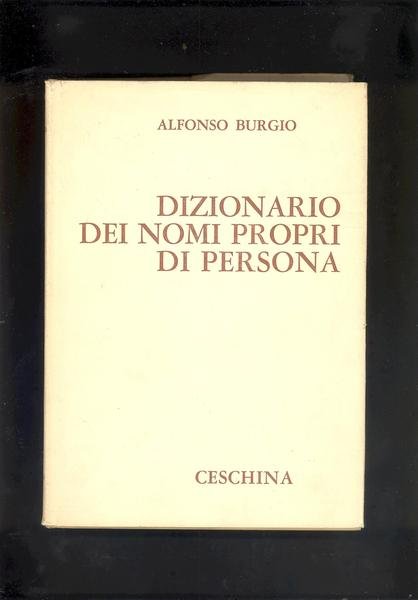 IN 8°, pp.511, COPERTINA EDITORIALE IN PIENA TELA RIGIDA CON TITOLO ENTRO FASCIA BLU E ROSSA AL PRIMO PIATTO RIPORTATO ANCHE AL DORSO + SOVRACOPERTINA CON TITOLO MARRONE. IL DIZIONARIO DEI NOMI PROPRI DI PERSONA E' UNA AMPIA GALLERIA DI RITRATTI UMANI, TRACCIATI SULLA SCORTA DELL'ETIMO DI CIASCUN NOME, RIPORTATO AI PERSONAGGI, NOTI O MENO NOTI, CHE L'HANNO ILLUSTRATO. VOLUME FACENTE PARTE DELLA BIBLIOTECA DI OPERE DI CONSULTAZIONE STAMPATO SU DUE COLONNE.<BR> OTTIMA CONSERVAZIONE. ID, 2998