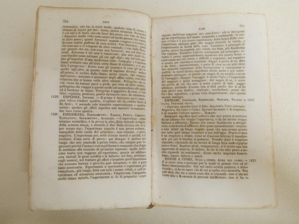 18 cm, pp. XXXII, 937, 2995 parole spiegate, rilegatura modesta in mezza pelle, titolo sbiadito al dorso, tracce d'uso alle cuffie. L'interno è discreto, con qualche brunitura dovuta alla qualità della carta- Ex libris privato applicato alla carta di sguardia. *** TUTTI I NOSTRI LIBRI SONO VISIBILI PREVIO CONTATTO MAIL O TELEFONO NELLA NUOVA SEDE DI MILANO: LIBRERIA COSMOPOLIS, VIA JOMMELLI, 22. ***