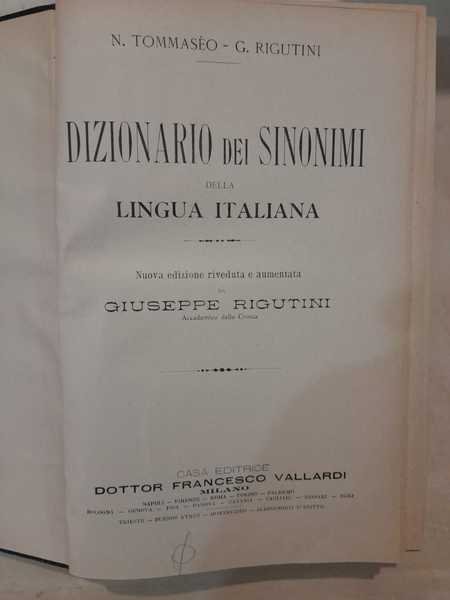 Dizionario dei sinonimi della lingua italiana. Nuova edizione riveduta ed aumentata da Giuseppe Rigutini