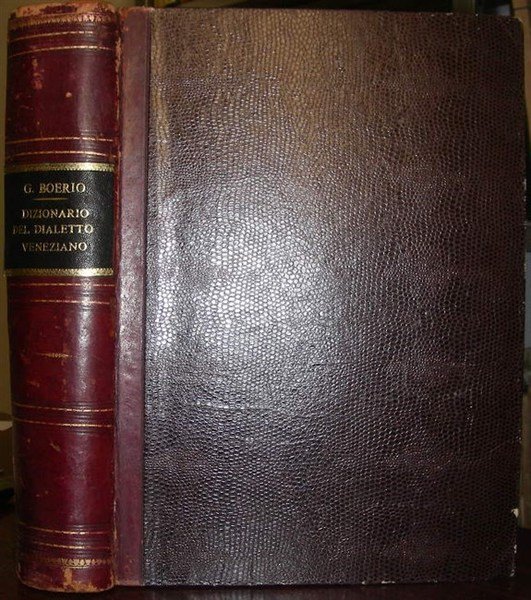 gr. vol. in-4 gr., pp. XIII, 802, bella leg. m. pelle coeva con fregi e tass. con tit. oro al d. Testo su tre colonne. Pubblicazione curata da Daniele Manin. Rara prima ediz. dell’opera più importante del Boerio (Lendinara 1754-1832) che ebbe grande successo tra gli studiosi ed eruditi veneziani tanto da riproporla, su insistenza del Cicogna, in una seconda ediz. già nel 1856. Il manoscritto originale si trova nella Civica biblioteca di Bassano. Raro. Prati 72. Picc. dif. alla cerniera inf. ma bell’esempl. [020]