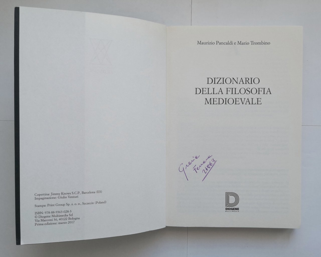 Editore Diogene Multimedia, 2017. Collana "Dizionari della filosofia".