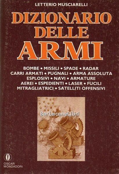 Dizionario delle armi. Bombe. Missili. Spade. Radar. Carri armati. Pugnali. Arma assoluta. Esplosivi. Navi. Armature. Aerei. Espedienti. Laser. Fucili. Mitragliatrici. Satelliti offensivi