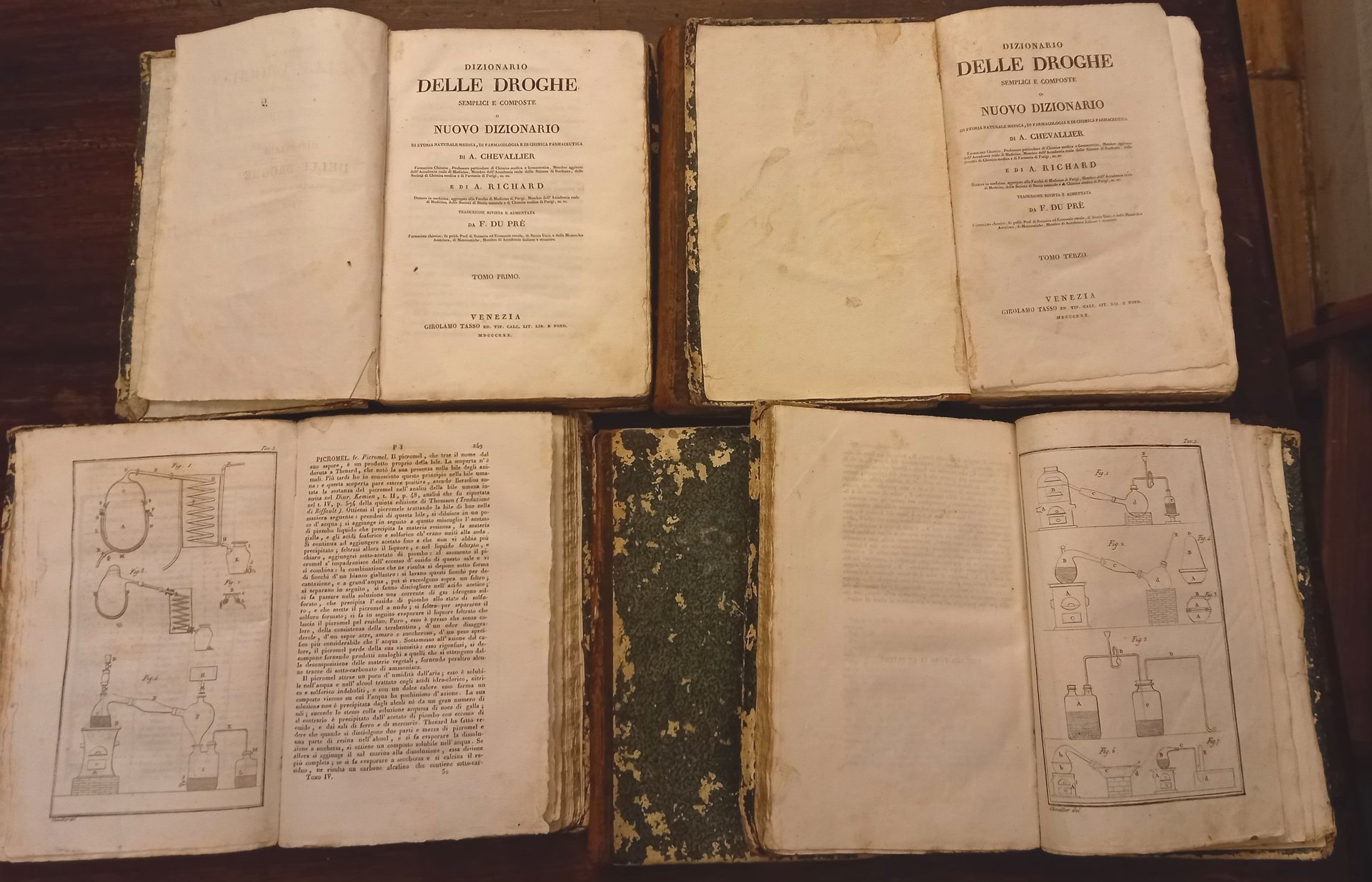 Dizionario delle droghe semplici e composte o Nuovo dizionario di storia naturale medica, di farmacologia e di chimica farmaceutica di A. Chevallier . e di A. Richard . Traduzione rivista e aumentata da F. Du Prè . Tomo primo-sesto.