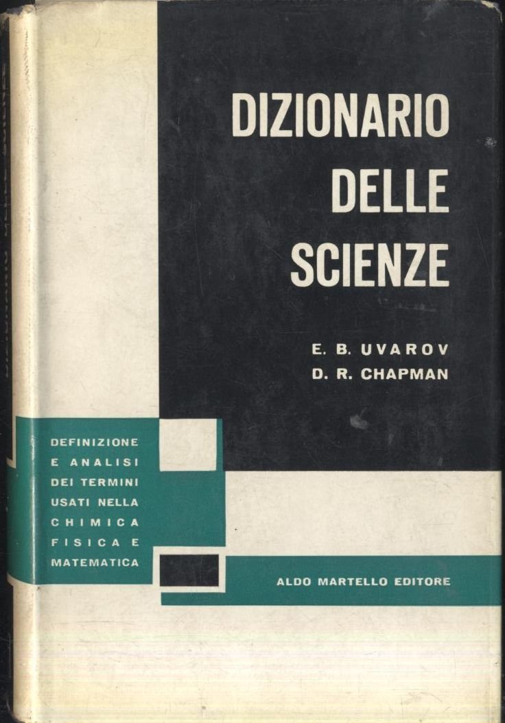DIZIONARIO DELLE SCIENZE Definizione e analisi dei termini usati nella chimica fisica e matematica di Uvarov e Chapman Aldo Martello editore, 1957.