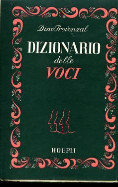 In-16°, pp. 535, brossura editoriale con sovraccoperta illustrata a più colori. Stato di nuovo. Prima edizione di questo singolarissimo (e forse unico in tal materia) dizionario compilato dal noto scrittore umoristico (Livorno, 1877-Voghera, 1972) in cui sono registrate innumerevoli testimonianze sulla voce e sulla conversazione di uomini e donne illustri di ogni tempo. 'L'oggetto di più ardente curiosità per l'uomo è la conoscenza degli altri uomini. poichè la caratteristica che distingue la nostra specie dagli animali è la parola, nulla dovrebbe essere interessante quanto il sapere come gli uomini parlino, quale sia la loro voce, quale l'atteggiamento del volto, quale la mimica. Eppure, un elemento così importante è tra i più trascurati. Qualcuno, dopo aver scartabellato inutilmente volumi e volumi per sapere come parlava il personaggio a cui si era dedicato per diletto o per studio, forse qui troverà quello che cercava: mi basta la sua gratitudine' (dalla Prefazione dell'Autore). I personaggi di cui sono repertoriate le voci e l'eloquio figurano in ordine alfabetico, da Giuseppe Cesare Abba sino a Zola. Spaducci, p. 239.