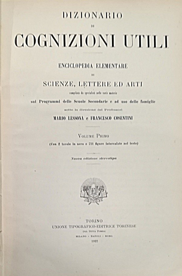 DIZIONARIO DI COGNIZIONI UTILI. ENCICLOPEDIA ELEMENTARE DI SCIENZE, LETTERE ED ARTI