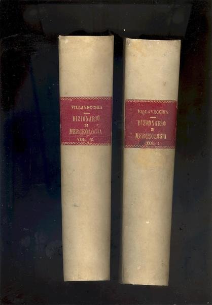 DUE VOLUMI IN 8 COSI' RIPARTITI : VOL1°) pp.1558, LETTERE A - M. VOL.2°) pp.1360, LETTERE<BR>N - Z, INDICE. LEGATURE D'EPOCA IN MEZZA PERGAMENA CON TASSELLO IN PELLE ROSSA E TITOLO IN ORO, PIATTI MARMORIZZATI. DIZIONARIO DI MERCEOLOGIA E DI CHIMICA APPLICATA ALLA CONOSCENZA DEI PRODOTTI DELLE CAVE E MINIERE, DEL SUOLO E DELL'INDUSTRIA CON SPECIALE RIGUARDO AI PRODOTTI ALIMENTARI, CHIMICI E FARMACEUTICI. COLLABORAZIONE DEI DOTT: G.FABRIS, G.ROSSI, A.BIANCHI. TERZA EDIZIONE COMPLETAMENTE RIVEDUTA, CORRETTA ED AMPLIATA. VECCHIA FIRMA NELLA PARTE BIANCA IN ALTO DEI FRONTESPIZI, MINIME SPELLATURE AI PIATTI, ALTRIMENTI<BR>OTTIMA CONSERVAZIONE GENERALE.