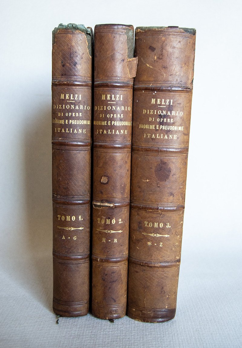 Gaetano Melzi (1786 - 1851) fu tra i principali cultori di ricerche bibliografiche dell'Ottocento italiano. Uomo di vasti interessi, appassionato di musica, per anni fece parte del comitato direttivo del teatro della Scala. Fu in corrispondenza con numerosi musicisti del suo tempo come Rossini, Donizetti, Puccini, ecc. Il terzo volume di quest’opera, pubblicato dopo la morte dell'autore, fu curato, con prefazione, correzioni, note e indice, dal figlio Giovanni Antonio Melzi.