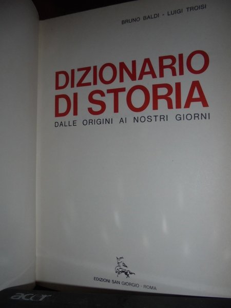 B. Baldi - L. Troisi. Roma, Edizioni San Giorgio, (senza data anni 80). Dizionario di Storia dalle origini ai nostri giorni. In-8°, similpelle edit. con titolo in oro sul dorso, sovracopertina. 876 pp. In ottimo stato di conservazione. Uff. TV. mob. nostro