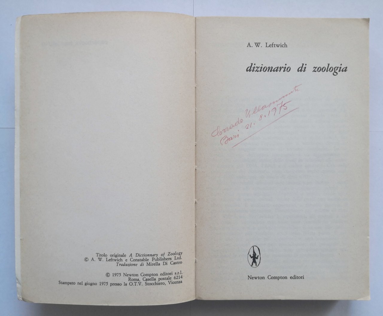 DIZIONARIO DI ZOOLOGIA Leftwich 1975 Newton Compton libro concetti fondamentali
