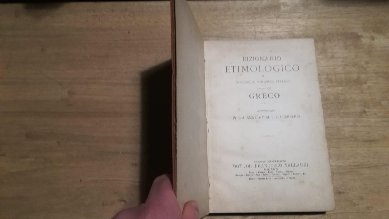 Amati, Guarnerio - Dizionario etimologico di vocaboli italiani derivati dal greco Vallardi - Senza data, primi del 900 Libro in ottime condizioni, piccole abrasioni in copertina, pagine brunite. Non esitate a contattarci per altre foto o richieste. Saremo lieti di soddisfare ogni vostra esigenza.