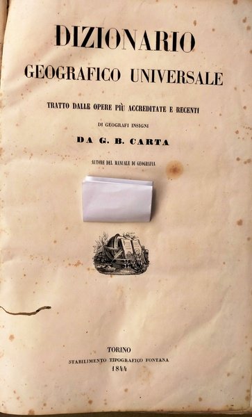 Dizionario geografico universale. Tratto dalle opere più accreditate e recenti di geografi insigni.
