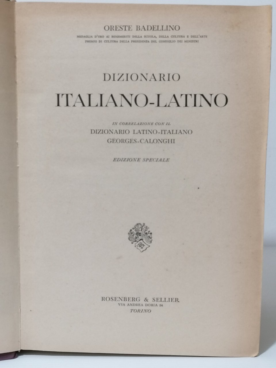 Dizionario Italiano Latino Badellino Rosenberg Sellier Edizione Speciale 1964