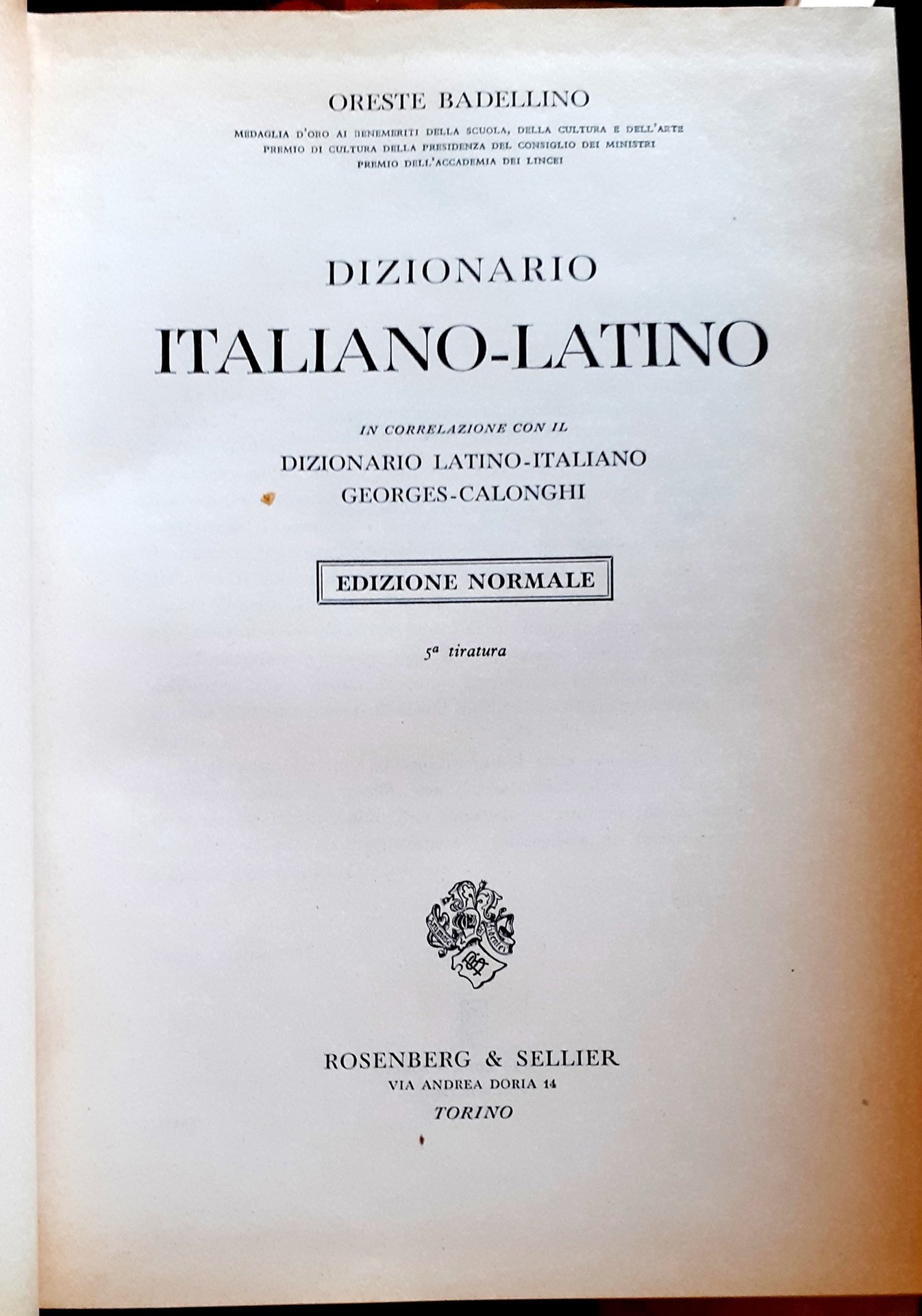 DIZIONARIO ITALIANO-LATINO in collaborazoione con il DIZIONARIO LATINO-ITALIANO GEORGES-CALONGHI. Volume II.