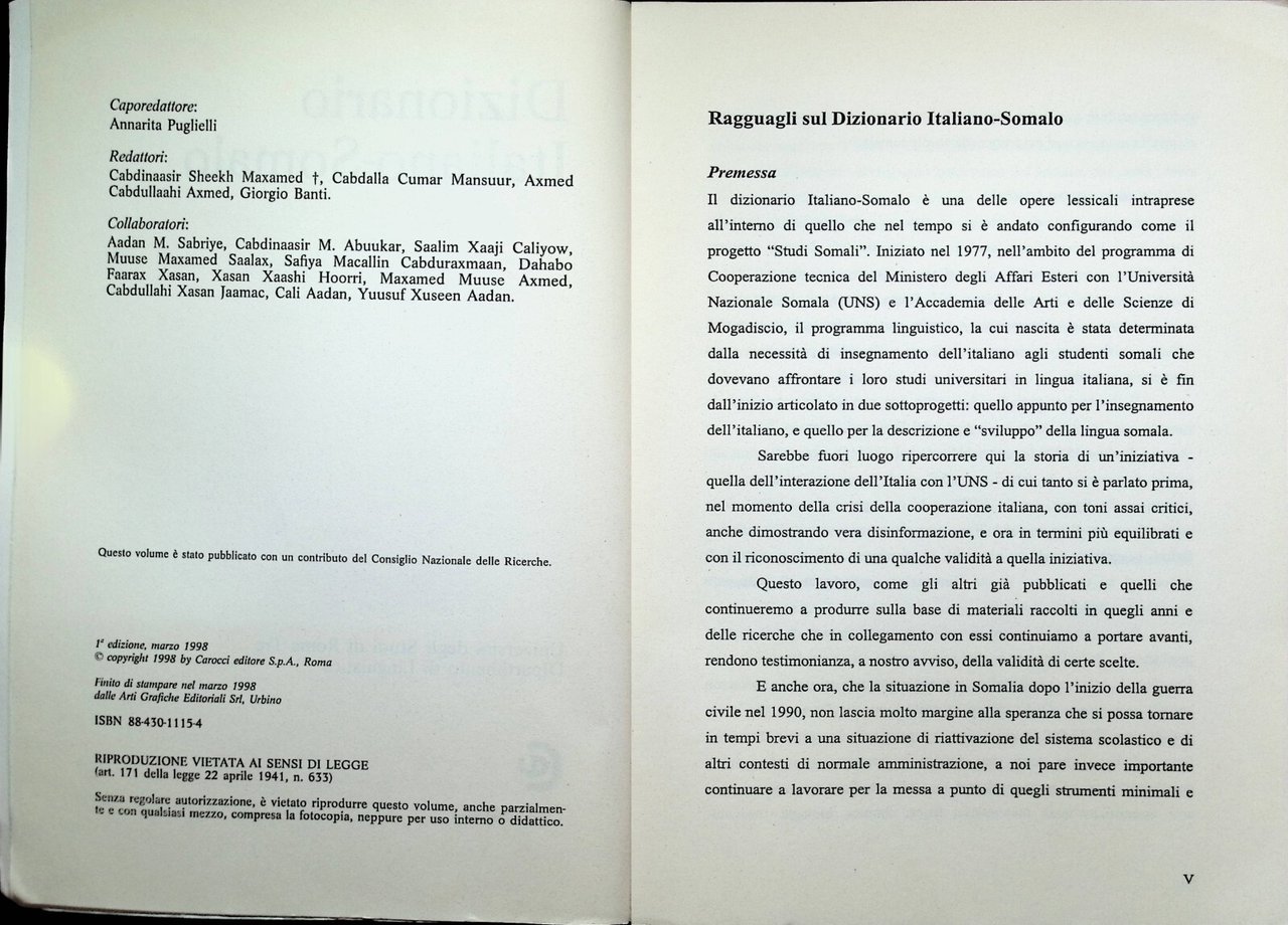 Dizionario Italiano Somalo Libro Puglielli Carocci 8843011154 Prima Edizione