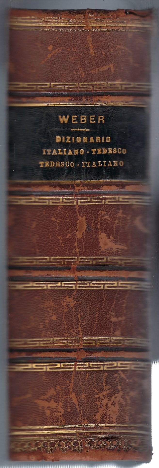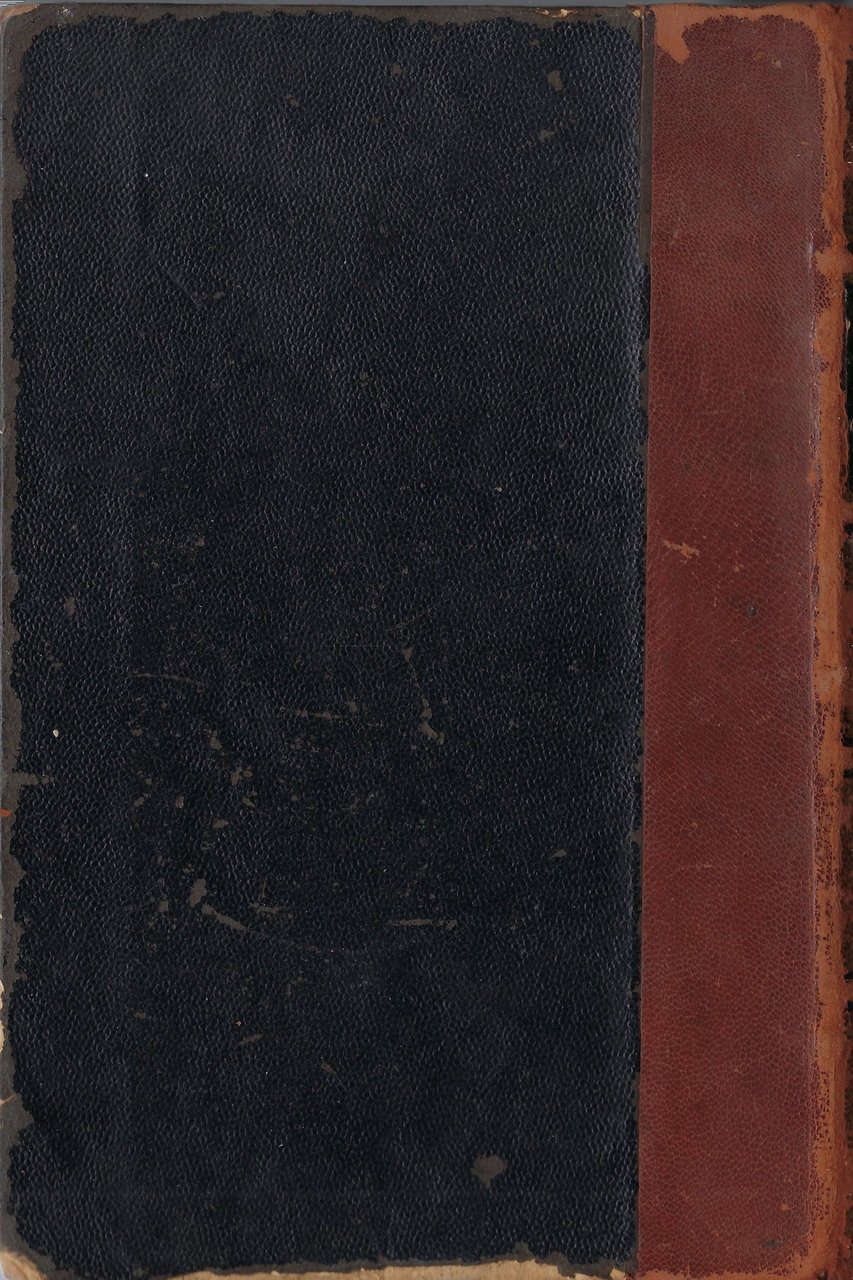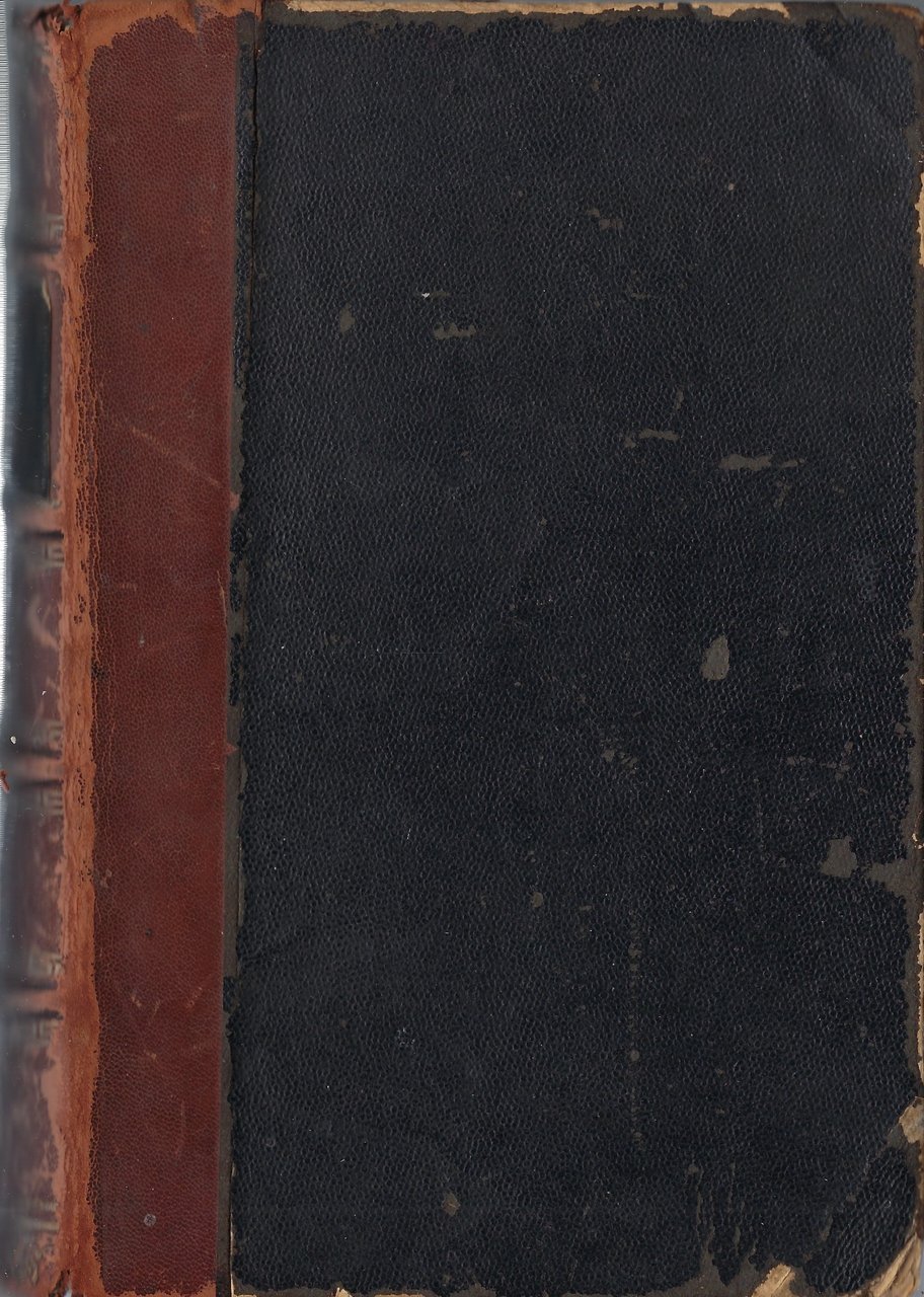 Rilegatura in cartonato rigido rinforzata al dorso da cuoio di colore marrone recante titolo e nome dell'autore.