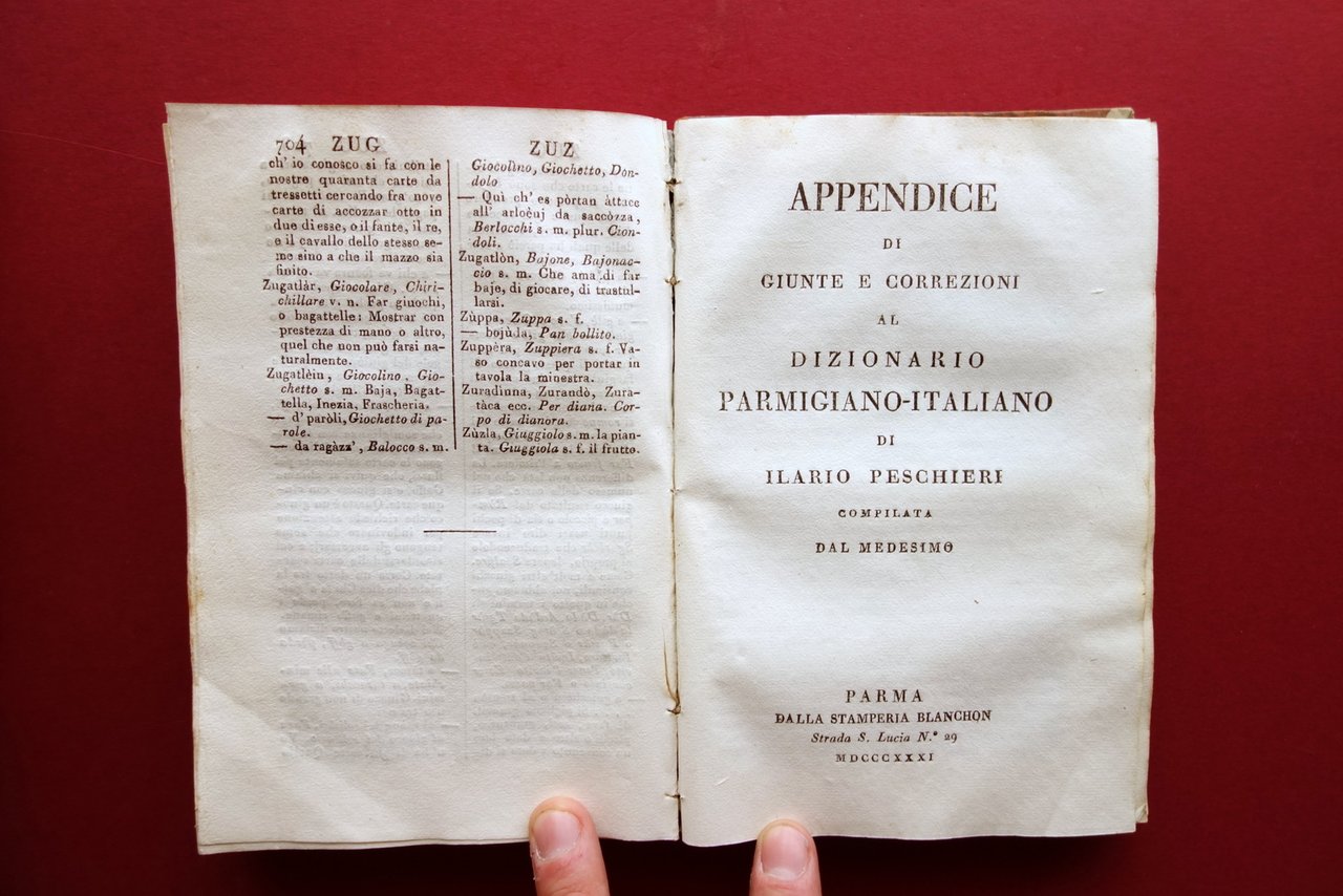 Dizionario Parmigiano Italiano Ilario Peschieri Blanchon 1828 2 Volumi Appendice