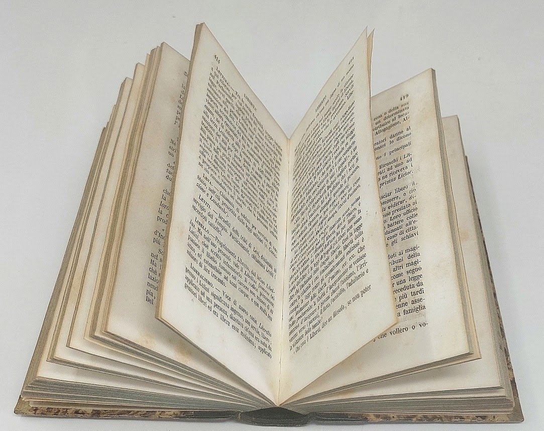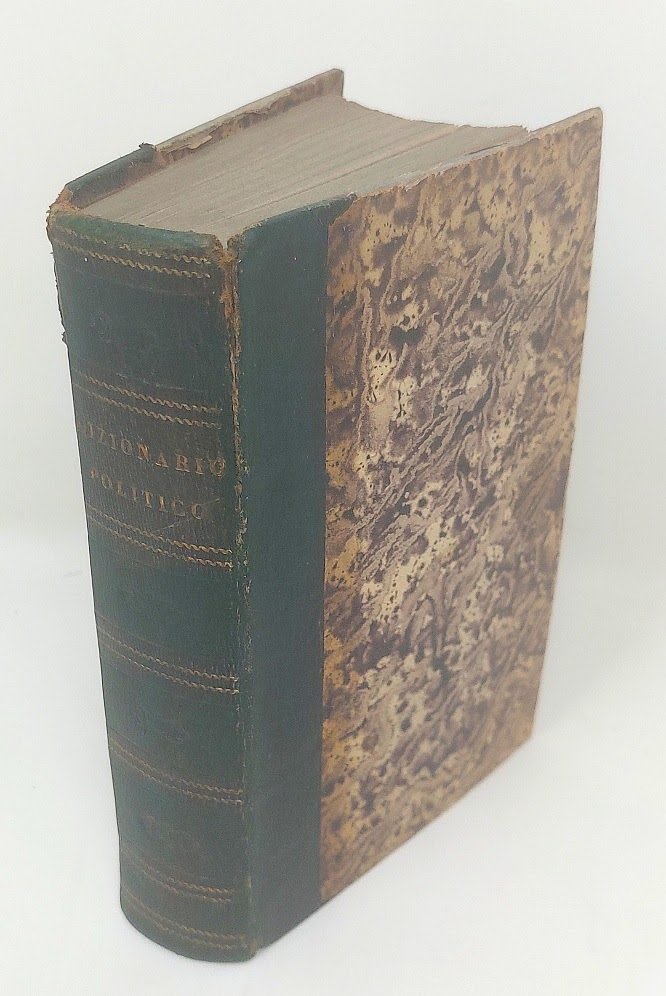 >in-8, pp. (8), 772,  legatura coeva in m. pelle verde, titolo e fregi in oro al dorso, tagli spruzzati. Prima e unica edizione di questo dizionario risorgimentale di autore anonimo,  (l'autore non è mai stato identificato) di economia politica, di pensiero politico e di geopolitica. Ponderosa opera, con voci divise alfabeticamente, da Abbacinamento a Zollverein (lega doganale tedesca), arricchita, in fine, dal quadro mondiale dei potentati, e loro importanza, nel 1840.  Buon esemplare (consuete bruniture della carta).