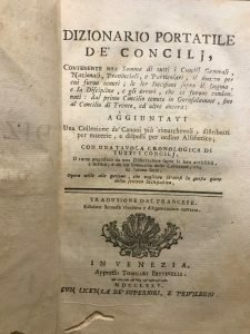 DIZIONARIO PORTATILE DE’ CONCILJ…aggiuntavi una collezione de’ canoni più rimarchevoli distribuiti per materie, e disposti per ordine alfabetico; con una tavola cronologica di tutti i concilj… Traduzione dal francese. Edizione seconda riveduta e diligentemente corretta.