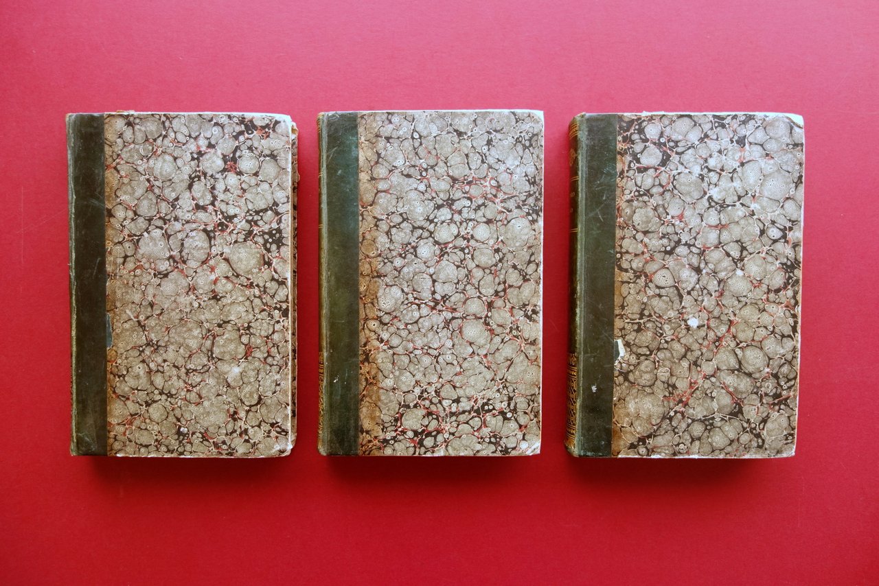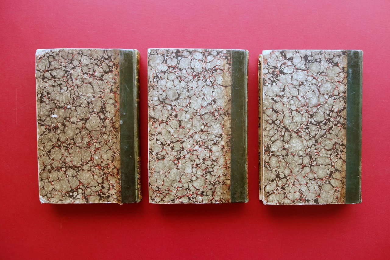 Don Prospero dell'Aquila, Dizionario portatile della Bibbia tradotto dal francese nell'italiano idioma, ed arricchito di moltissime note, di nuovi articoli, e di varie carte topografiche dal Padre Don Prospero dell'Aquila nuova edizione emendata Tomo I - II - III - (opera completa in tre tomi) Tip. Tomassini, Foligno 1833-34; cm 21x13,5; pp. VI-384, con una bella carta incisa in b/n rip. pi√π volte (tomo I); pp. 400 con una bella carta incisa in b/n rip. pi√π volte (tomo II); pp. 384 (tomo III); bella legatura d'epoca in mezza pelle con titolo e fregi impressi in oro al dorso, piatti marmorizzati, tagli colorati a spruzzo. Opera completa in tre tomi. Frontespizi con lieve traccia di timbretto di vecchia istituzione scolastica dismessa. Condizioni di conservazione Tomi tutti e tre ben conservati con tracce d'uso; coperte con alcune piccole lievi abrasioni e poche minuscole marginali mancanze ai rivestimenti in pelle o marmorizzati. Interni buoni con alcune piccole leggere bruniture. Opera completa in tre tomi. SETT216.L21240 N